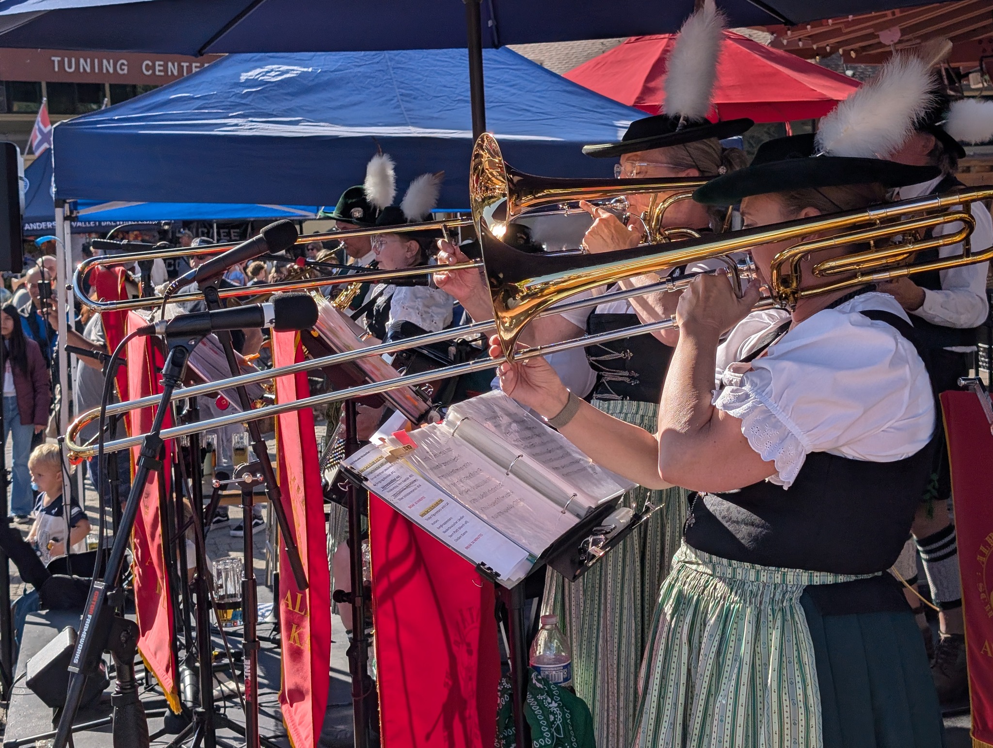 The STV Alpentänzer Schuhplattler includes about 40 active dancers and band members, all volunteers who rehearse and perform for the pure enjoyment of the experience. The group strives to preserve and celebrate Bavarian and Austrian traditions through authentic music and dancing at community and cultural events throughout Northern California. Performances feature a mix of traditional music and dances from Bavaria and Austria, including lively Polka, Ländler, Plattl, and Boarischer styles